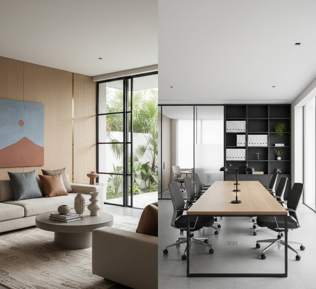 Thoughtfully crafted interiors for homes and workplaces, balancing comfort, functionality, aesthetics, and durability for everyday use.